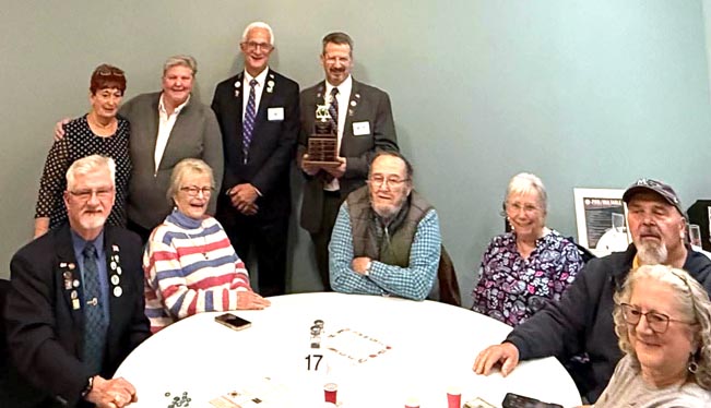 The Maine Elks Association Roaming Elk Committee is pleased to report that on November 12, 2025, the Bath Elks have captured ROCKY from Portland lodge #188. Seven Bath members attended the three-card challenge game on the night of November 12th. Bath was able to capture it before twelve Sanford Elks arrived for the GER visit that was held and hour and half later. The Coastal District Trophy can now be captured from the Bath Elks Lodge #934 at a future meeting or event.
