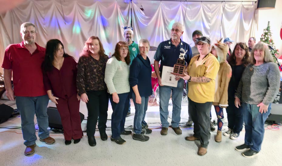 The Maine Elks Association Roaming Elk Committee is pleased to report that on December 6, 2025, ten Brunswick Elks joined the Bath Elks lodge in enjoying Bath’s annual Jingle Jam event to deliver Christmas cheer to less fortunate neighbor families, as well as to help welcome MEA President Corey Dewitt and First Lady Joleen for their official visit to Bath. In the process the Brunswick members re-captured Rocky – once again. The Coastal District Trophy can now be captured from the Brunswick Elks Lodge #2043 at a future meeting or event.