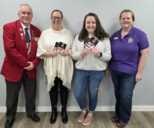 Pictured is Ken Gotreau Augusta Elks Lodge #964 Exalted Ruler, Sara Fenwick and Abby Hopkins from Sisters in Arms and Jean Gotreau, Augusta Elks Lodge #964 Veterans Committee Co-chair.