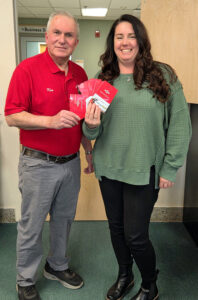 The Augusta Elks Veterans Committee made a donation of $500 in Irving gas cards (twenty $25 gift cards) to Voluntary Services at Togus VA. These gas cards are handed out to Veterans in need to assist them with travel costs to and from their medical appointments. Pictured is Ken Gotreau, Exalted Ruler of the Augusta Elks #964 donating the gift cards to Sarah Goodman, Acting Chief of Voluntary Services at Togus VA. “So long as there are veterans, the Benevolent and Protective Order of Elks will never forget them.”