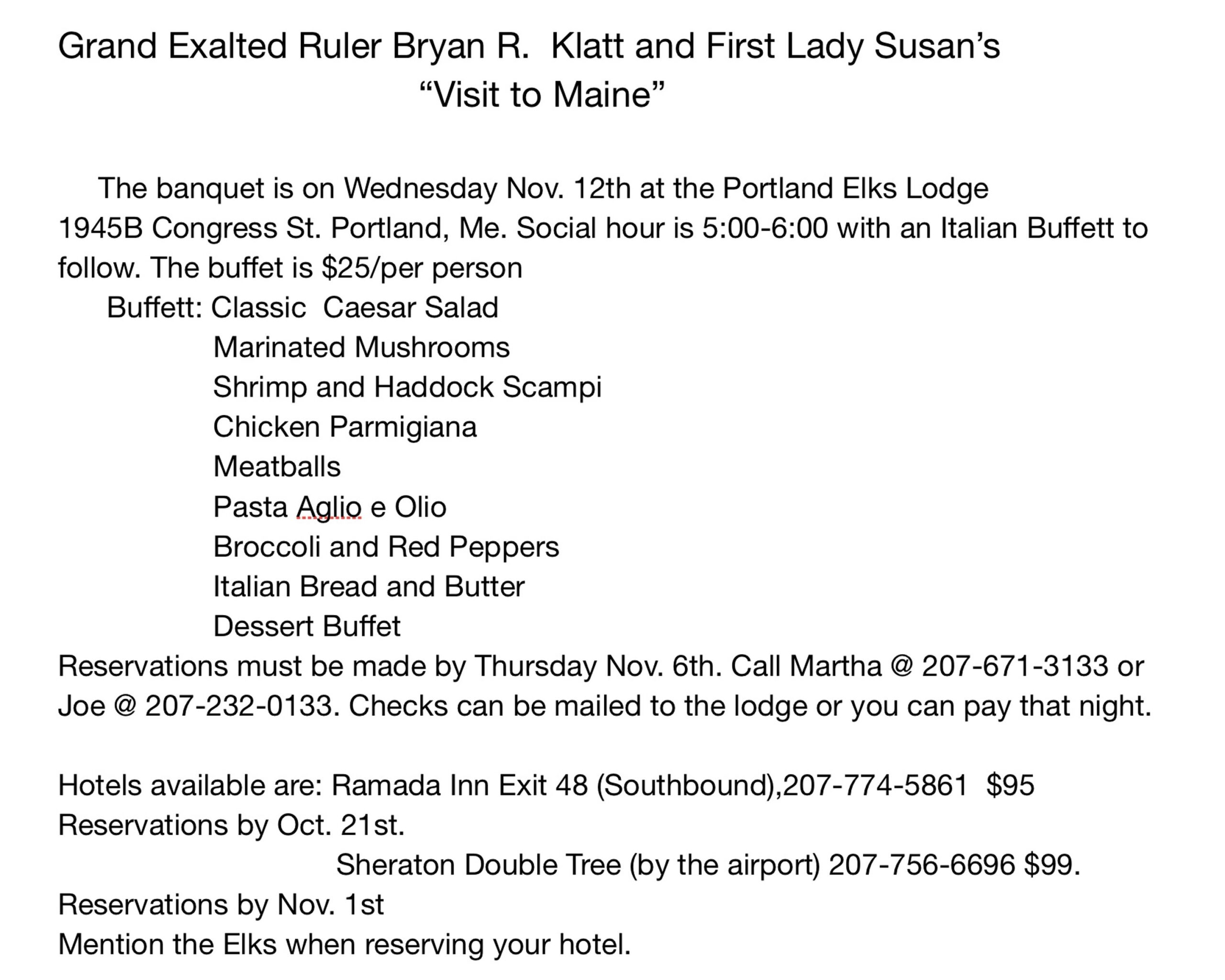 | October 18, 2025 | Biddeford-Saco Elks | Visitation & Mortgage Burning Celebration |